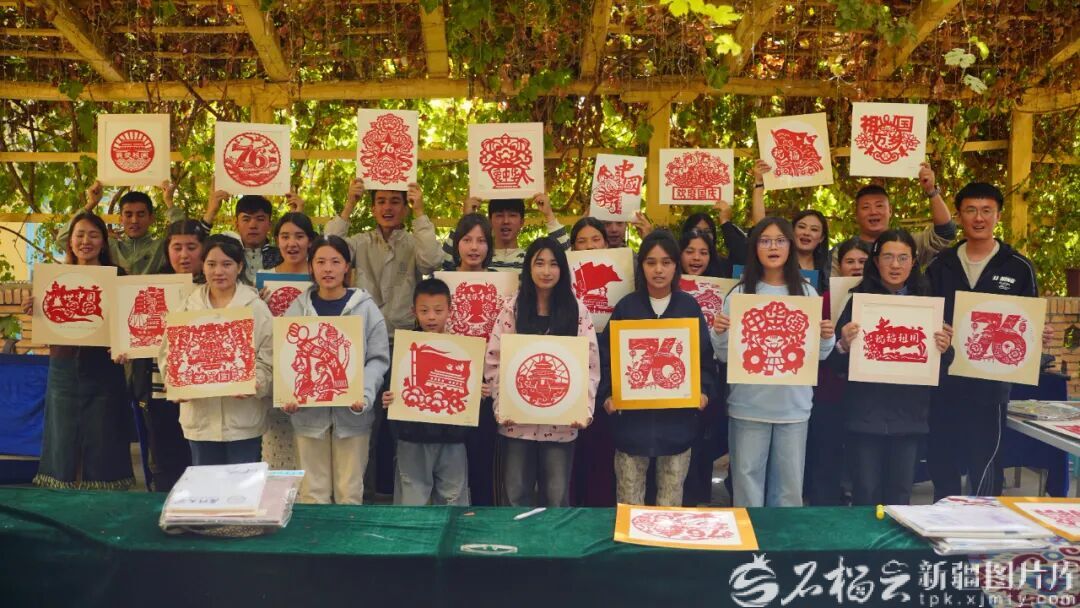 10月2日,疏附县第一中学、疏附县中等职业技术学校的师生们用剪纸来传递节日喜悦。疏附县融媒体中心供图