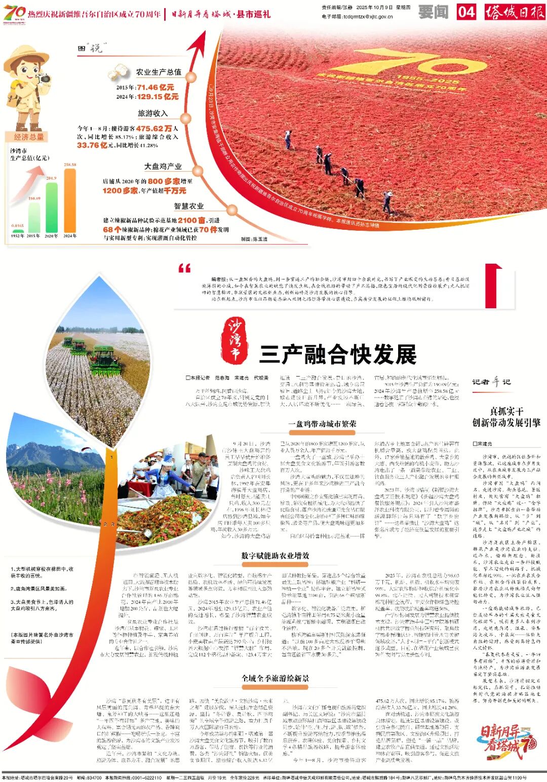 自治区成立70年来,特别是党的十八大以来,沙湾立足市域优势资源,加快推进一二三产融合发展。
