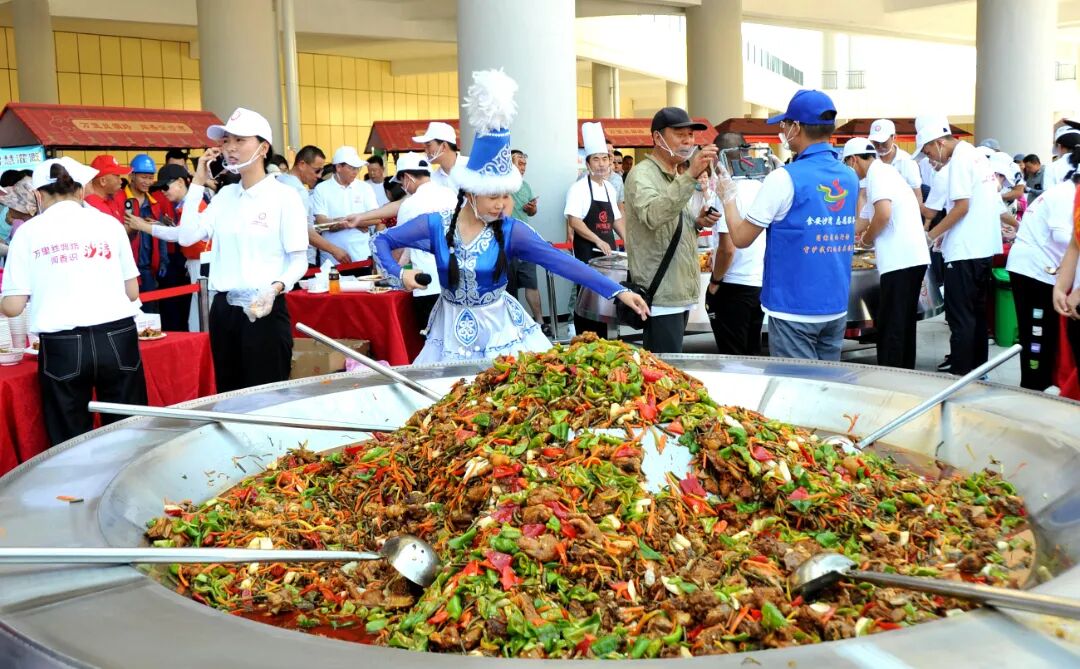大盘美食节上,色泽诱人的大盘鸡吸引八方来客。