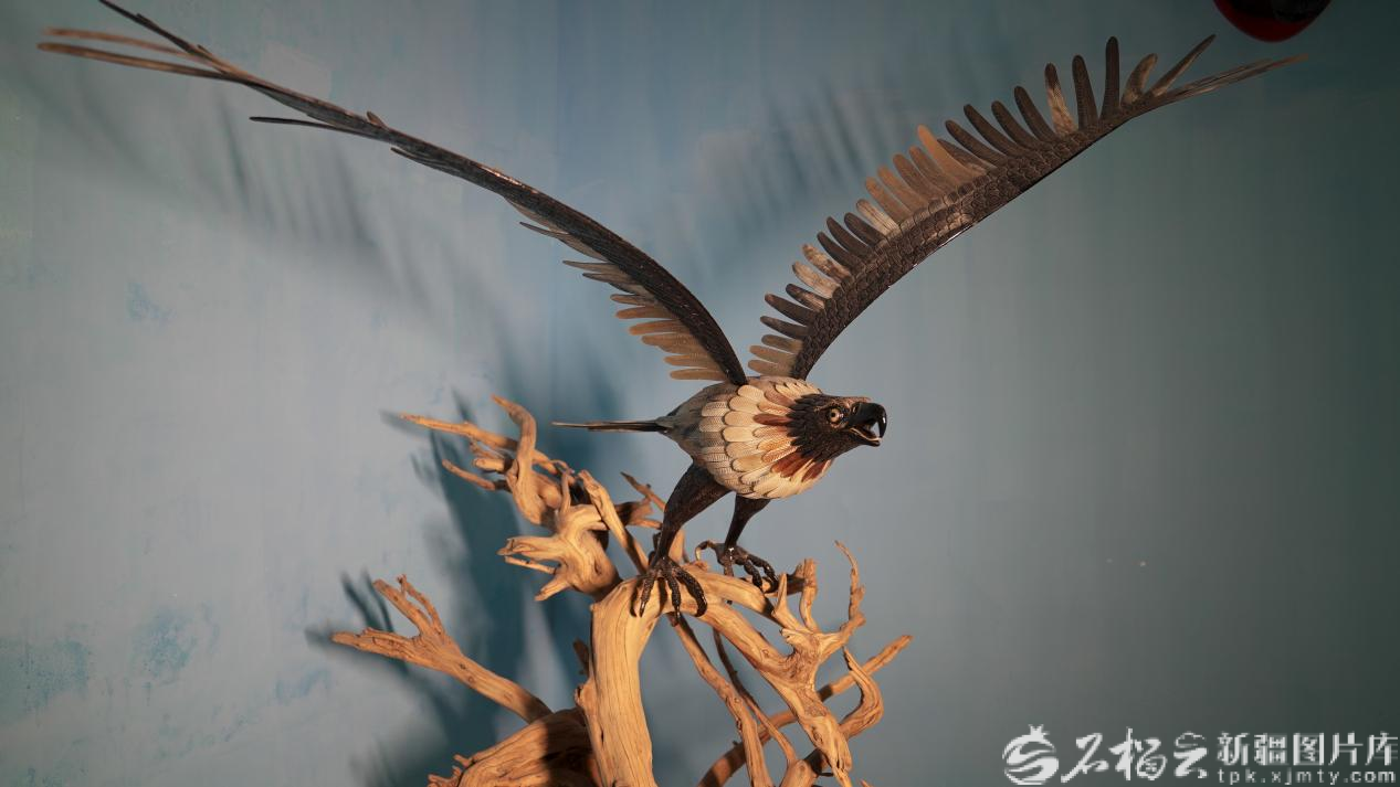 叶力江·巴特尔汗与逯永成创作的骨雕作品《雄鹰展翅》。哈拉哈提 摄