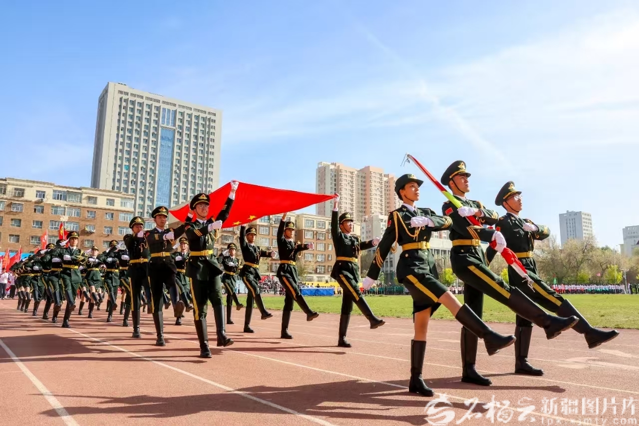 升旗仪式上的新疆农业大学大学生国旗班。新疆农业大学团委供图