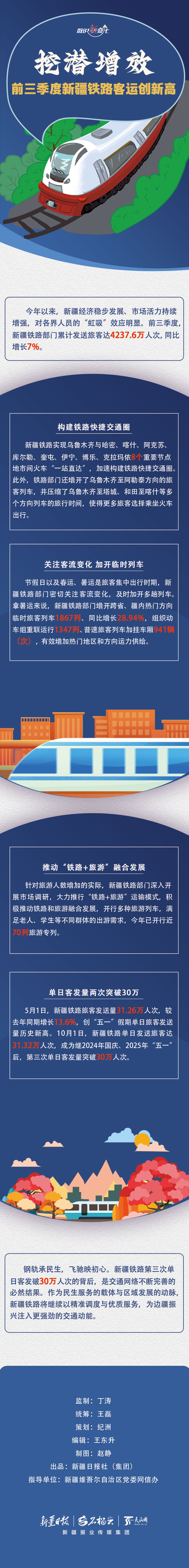 从戈壁荒漠到沃野绿洲,从驼铃悠扬到笛声长鸣,一条条钢铁巨龙穿天山、跨戈壁、越草原,将曾经遥远而神秘的新疆呈现在大众面前。今年前三季度,新疆铁路推出了哪些特色铁旅产品?取得了怎样的成绩?今天的《数说“新”变化》带你来看看。