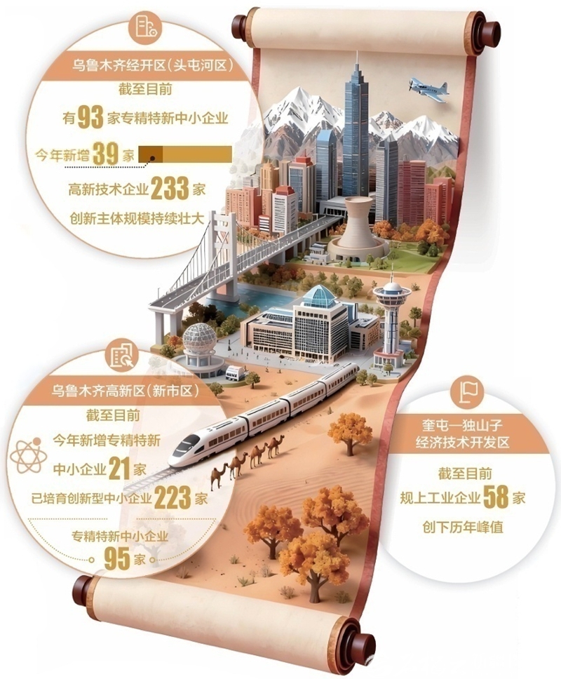 这种创新蜕变在乌鲁木齐经开区(头屯河区)持续上演。该区今年新增39家专精特新中小企业,连续6年保持两位数增长;高新技术企业233家,创新主体规模持续壮大。