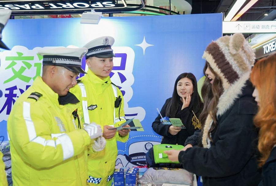 2025年10月19日,第三届新疆动漫节现场,交警们的动漫宣传展台人气高涨。新华社发