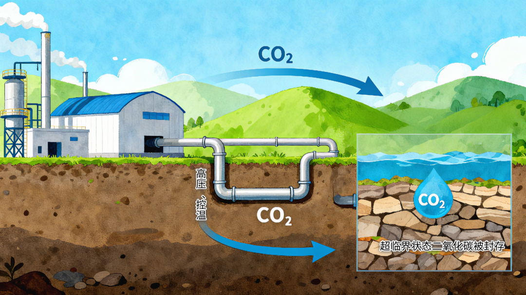 简单说,就是通过高压和控温,把二氧化碳变成一种“似气非气、似液非液”的超临界状态,然后注入地下千米深的岩层中,利用地质圈闭实现长期稳定封存,让它乖乖待在里面,不再跑出来“加热”地球。