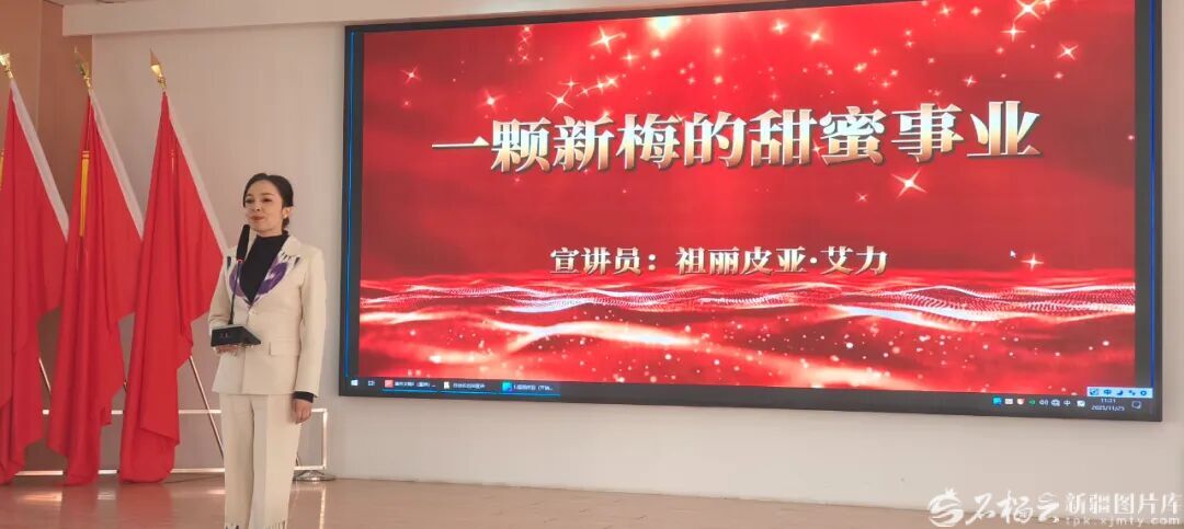 来自喀什地区伽师县委宣传部的宣讲员祖丽皮亚·艾力在新疆庆华能源集团有限公司开展宣讲。热依汗古丽·塔衣尔江 摄