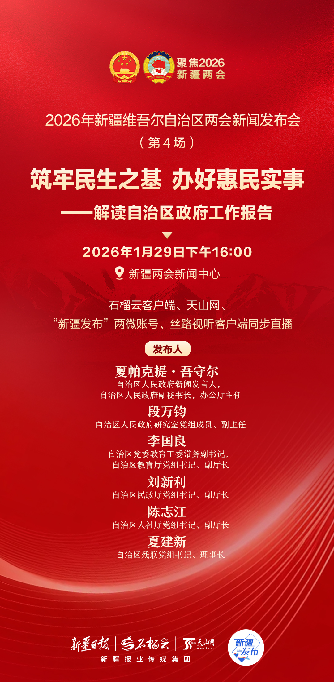 海报丨2026年新疆维吾尔自治区两会新闻发布会(第4场)筑牢民生之基 办好惠民实事——解读自治区政府工作报告