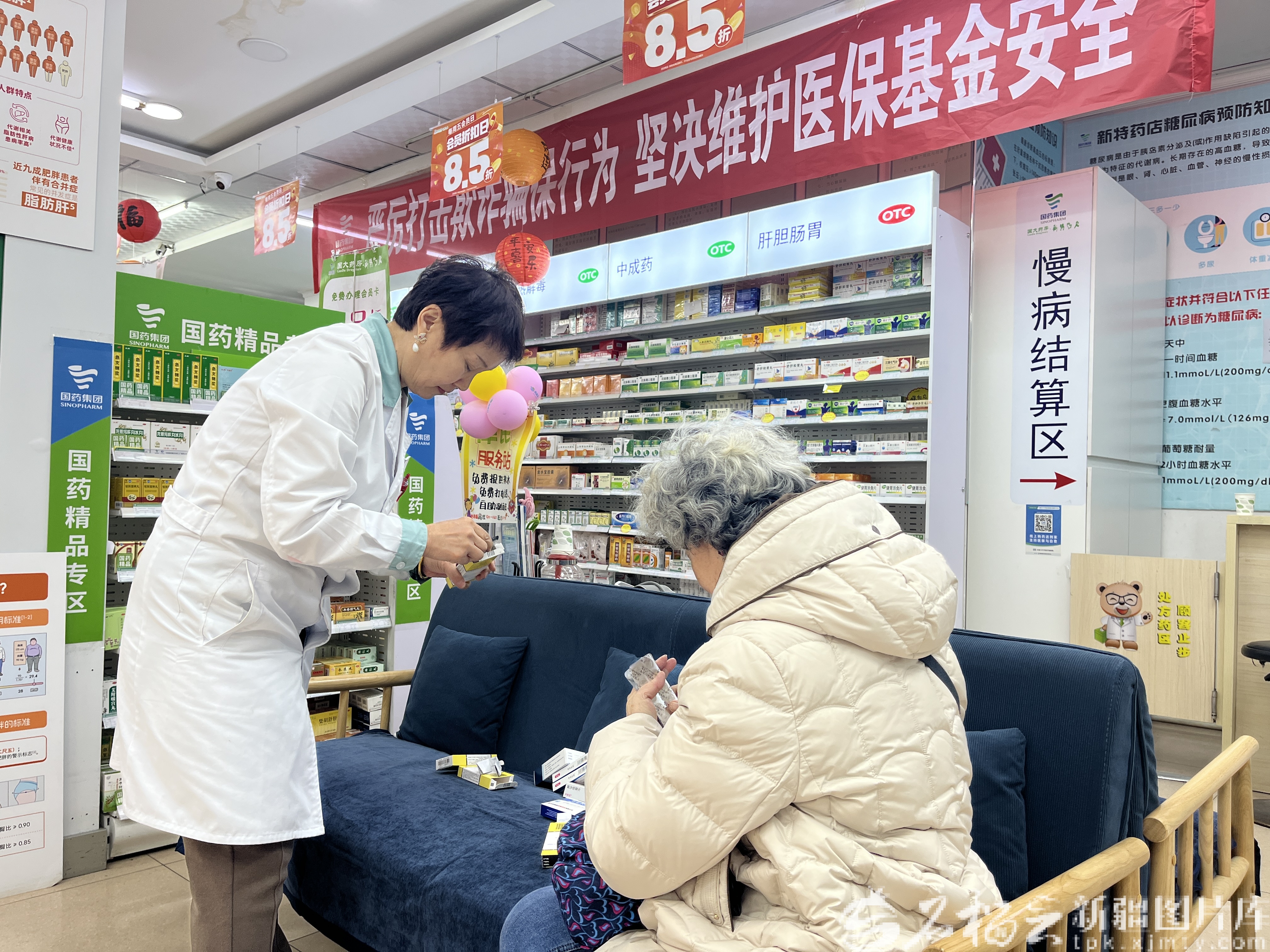 2月13日,在国药控股国大药房新疆新特药业连锁有限责任公司乌鲁木齐市中山路分店,顾客在国家集采药品专区购药。天山网-新疆日报记者 任春香摄