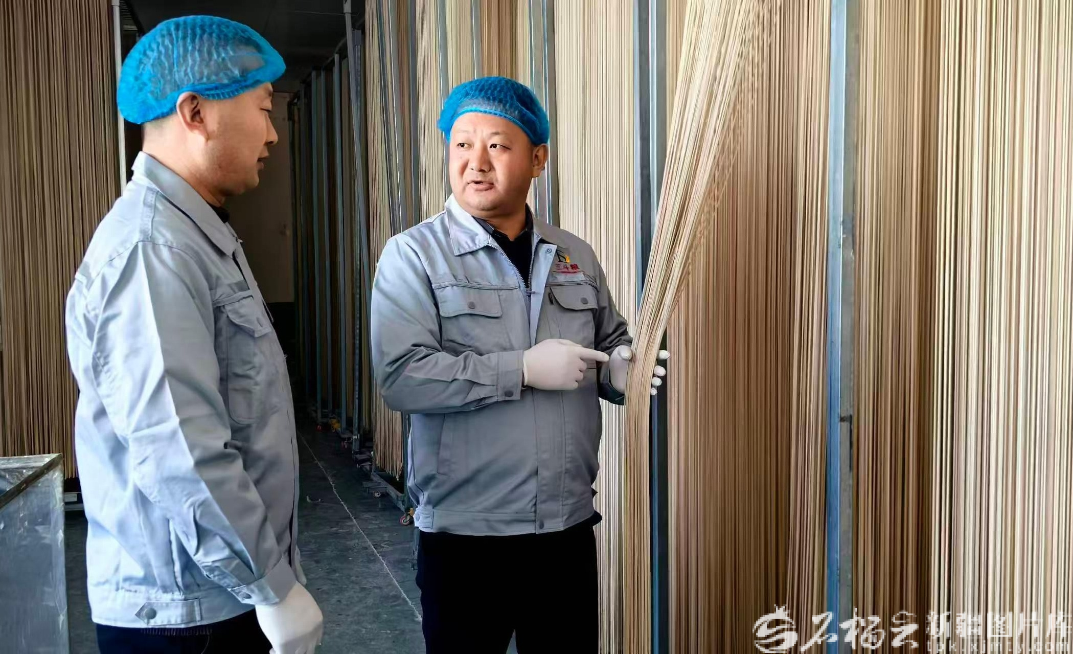 夜幕渐渐降临,家家户户灯火温暖,三斗粮公司车间的灯光依然明亮。一根根纤细筋道的手工拉条子在此制成并发出,跨越山海,走向全国餐桌。