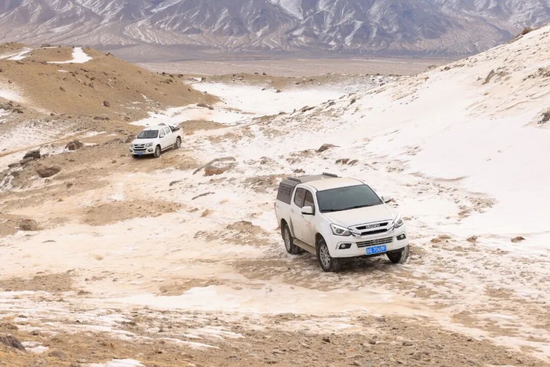 图片说明:越野车一前一后,穿过几处积雪路段,海拔4100米的塔提库里人工影响天气烟炉作业点已经出现在眼前!