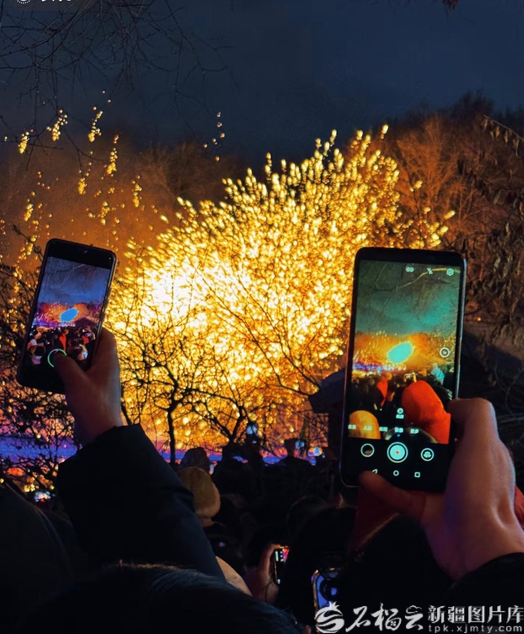 游客在乌鲁木齐市植物园观看打铁花表演。天山网-新疆日报记者 宋海波摄