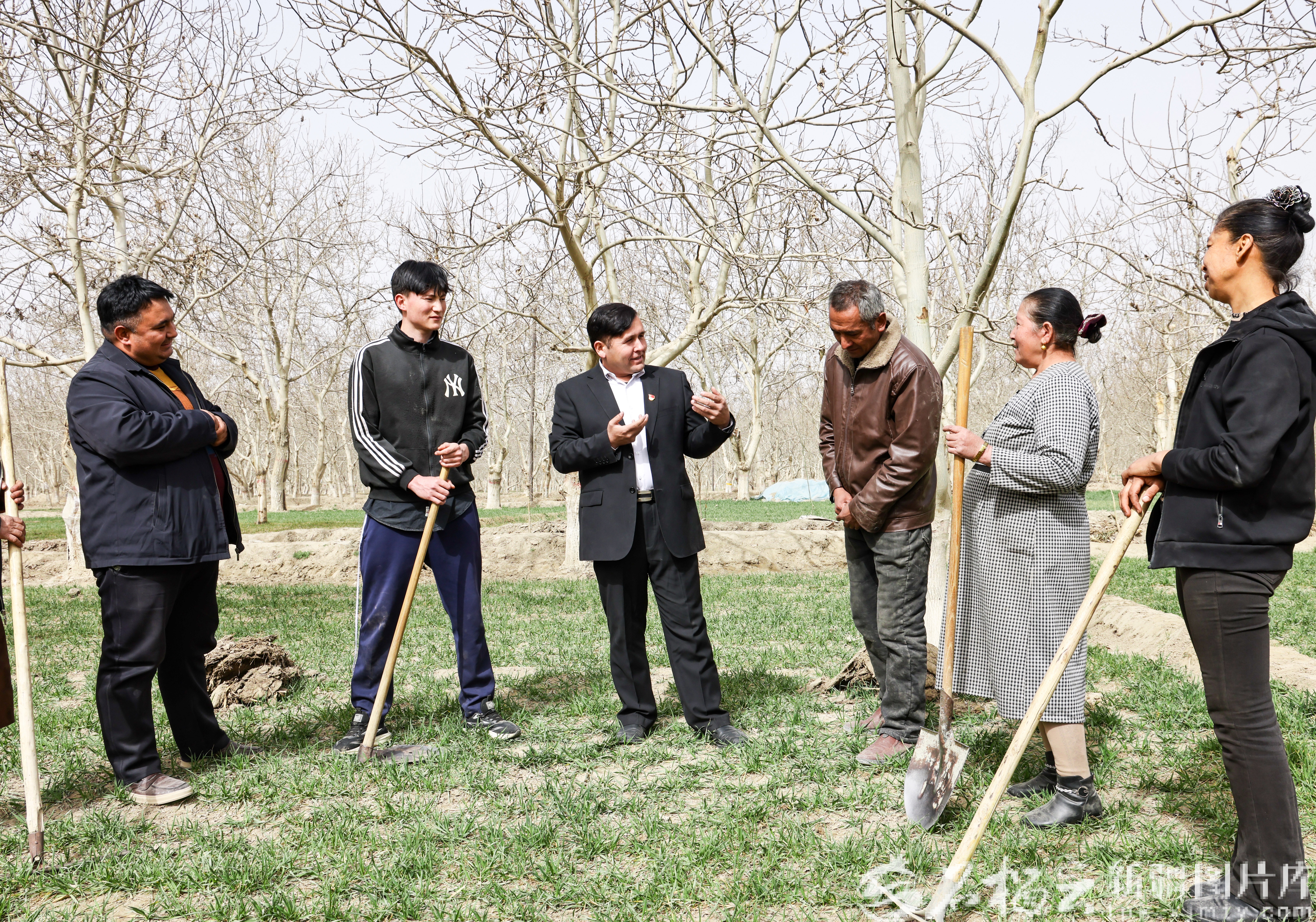村里的事,关乎群众柴米油盐的切身利益。近年来,阿卜迪麦麦提·奥布力一心带领村民增收致富,引进优质核桃品种,邀请农技专家上门指导,牵头成立合作社,让村民在家门口稳定就业。他动员村民整治闲置荒地,栽种新梅,昔日荒地变身生态绿地与增收园,既美化了村庄,又拓宽了收入渠道。
